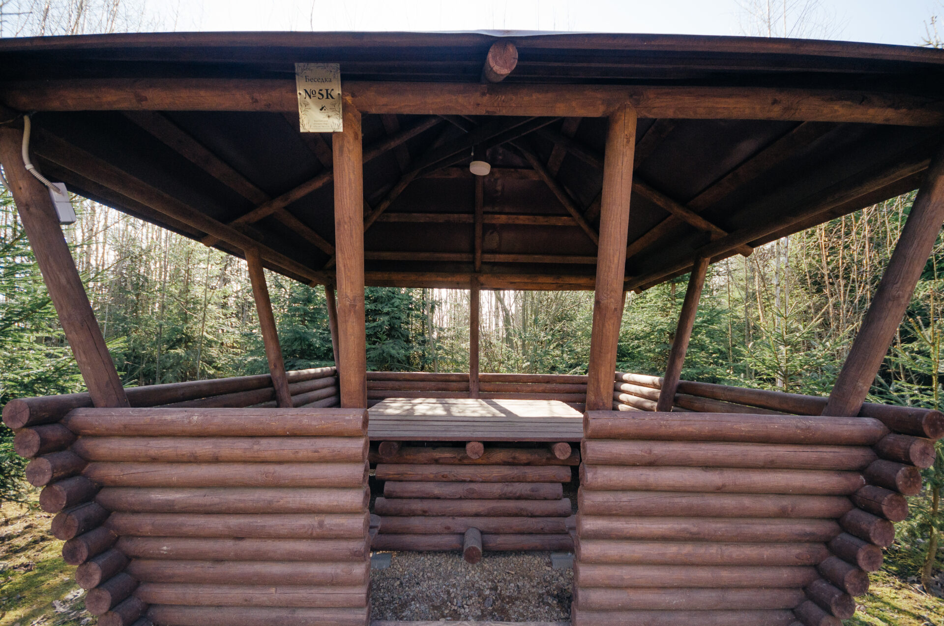 Беседка открытого типа в виде квадрата с мангалом.
