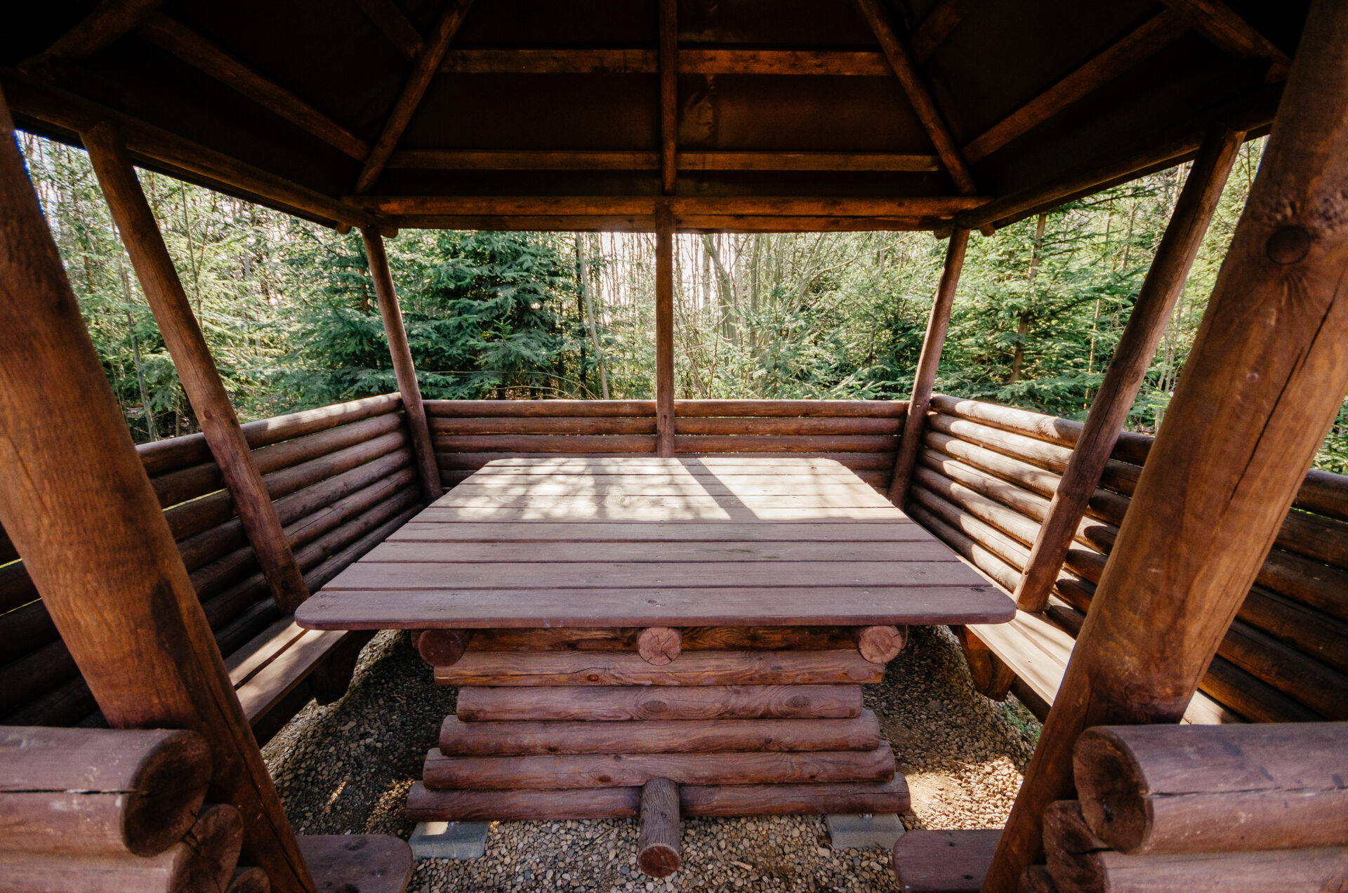 Беседка открытого типа в виде квадрата с мангалом.